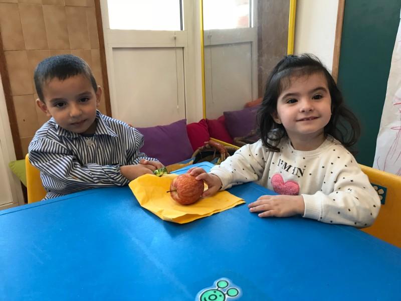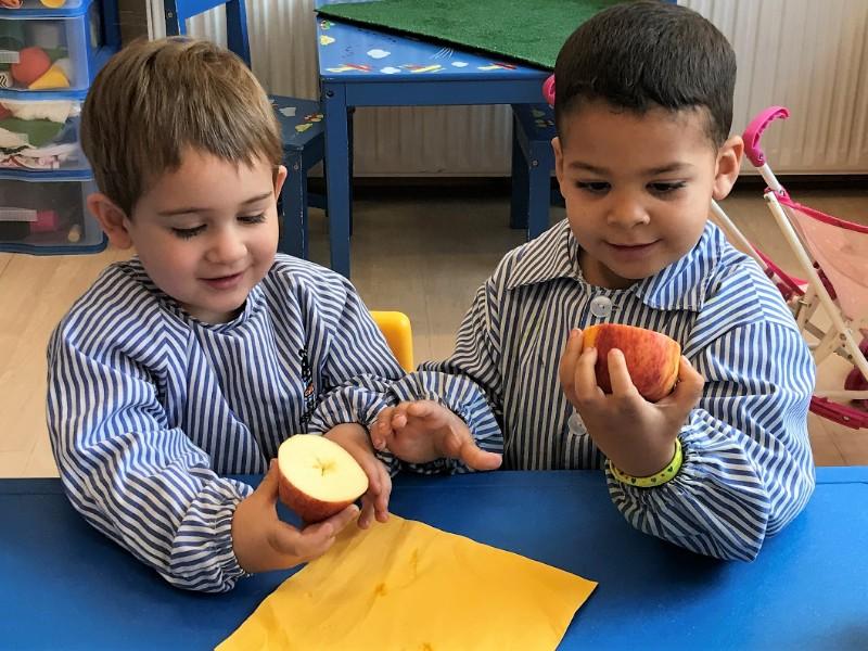 A la reunió d’inici de curs, els pares i mares dels Cargols es van convertir per un moment en infants escoltant el bonic conte: LA POMA QUE VOLIA SER ESTRELLA i descobrint per ells mateixos que passava quan partíem una poma. Avui, han estat els Cargols qui l’han escoltat, i si abans ens agradaven les pomes, ara encara ens agraden més.