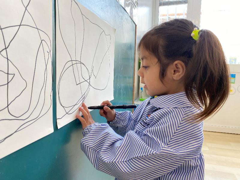 Per trobar els personatges que seran els protagonistes del nostre conte hem començat una línia en un full que cada un de nosaltres hem continuat. Després hem observat els gargots que han sortit i hem imaginat què ens recordaven. I, mireu hem trobat els nostres protagonistes!!