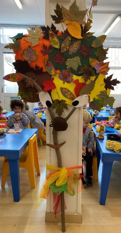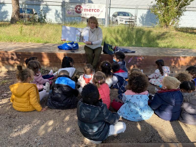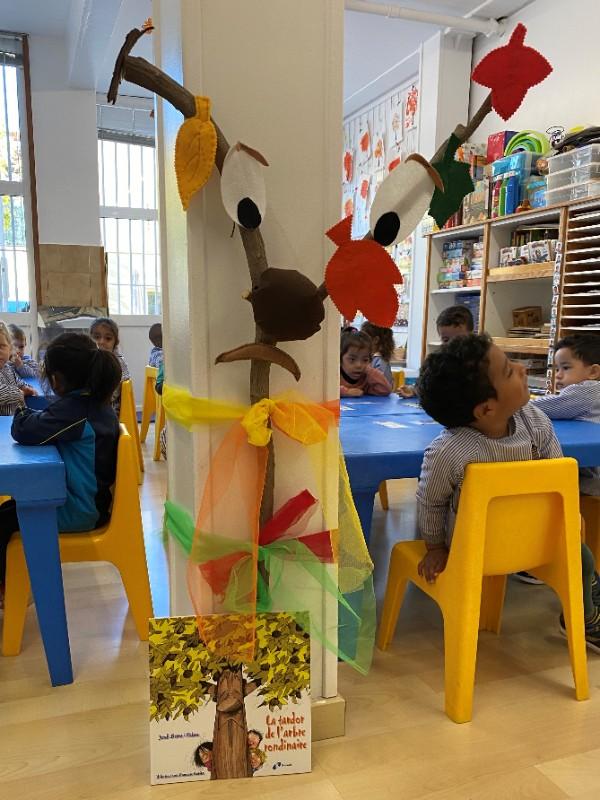 I allà oooohhh, quina sorpresa!! La Senyoreta Carme ens va venir a visitar per explicar-nos un conte molt bonic: LA TARDOR DE L’ARBRE RONDINAIRE. Tothom que coneixia l’arbre del Carrer Sant Pau, sabia que era un rondinaire i es queixava per tot i mica a mica s’anava secant, però uns nens van decorar-lo amb fulles de diferents colors i ara ja no rondinava més i era l’arbre més famós i content de la ciutat.
