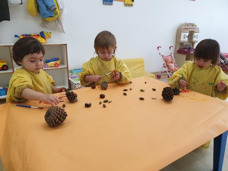 A la classe dels pollets i les tortuges, descobrim i coneixem la tardor  a través d'experimentar, de tocar i manipular, d'olorar,  de tastar els seus fruits i fruites, trepitjant i llençant fulles o amb les ampolles sensorials!