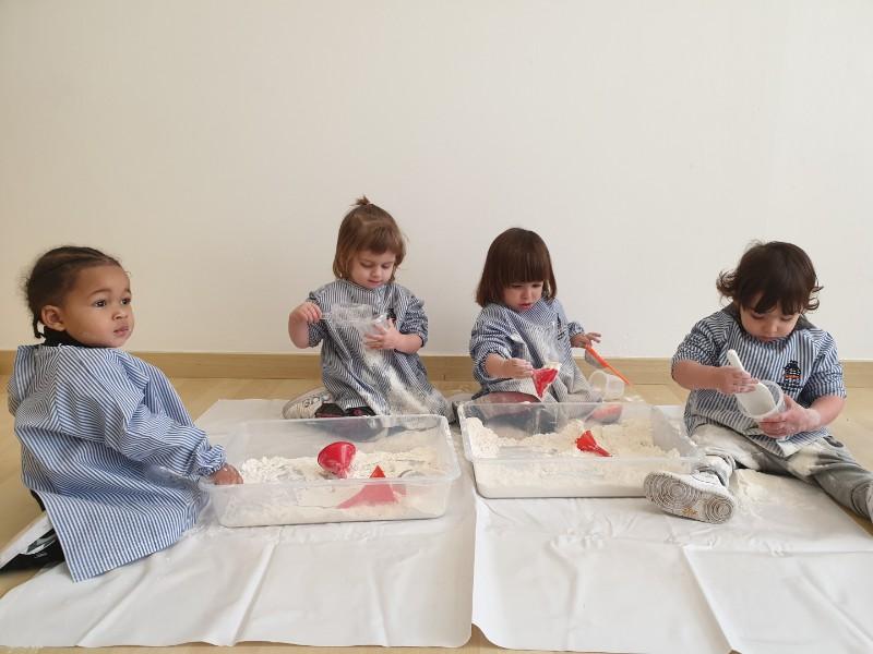 Ara amb la panxa plena, ens preparem per a l'activitat que ens prepara la mestra. Què farem avui? Experimentació amb farina? Pintem? Toquem instruments? Expliquem contes ? Fem construccions o transvasaments?  Juguem amb pilotes?