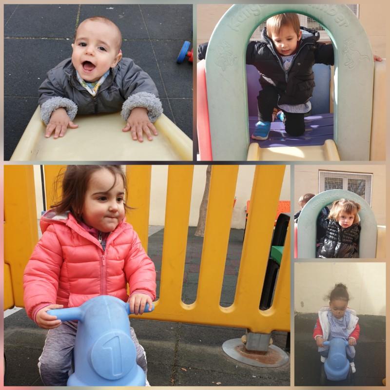 I ara toca anar al pati!! Ens ho passem molt bé al pati jugant amb el tobogan, les motos, el balancí, corrent, saltant sense parar!