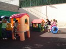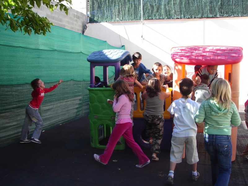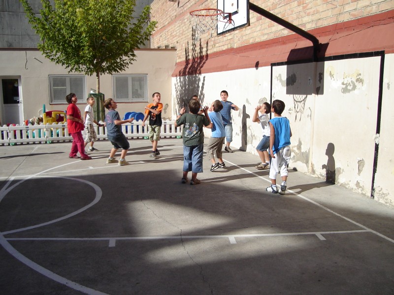 Al pati, podem jugar amb les casetes, els tobogans, jugar a bàsquet, a futbol, i parlar i disfrutar amb els companys i companyes.